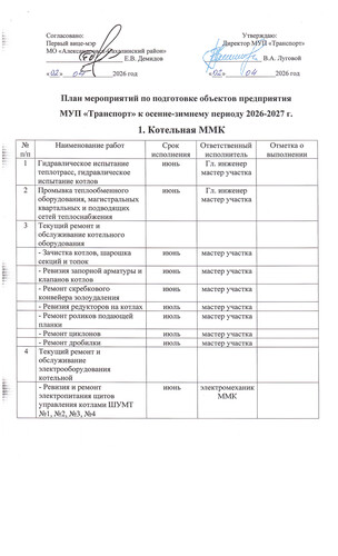 Перечень мероприятий по подготовке к ОЗП 2026-2027